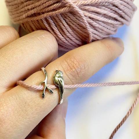 Bird & Leaf Crochet Ring.
