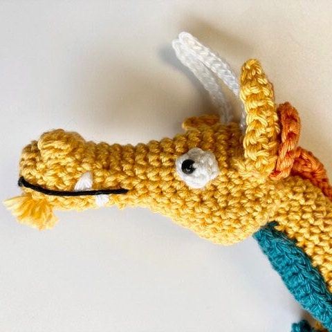 This cute yellow dragon crocheted in our Sunshine Yellow British yarn is called Muyang His name means 'Bathe in the Sun'