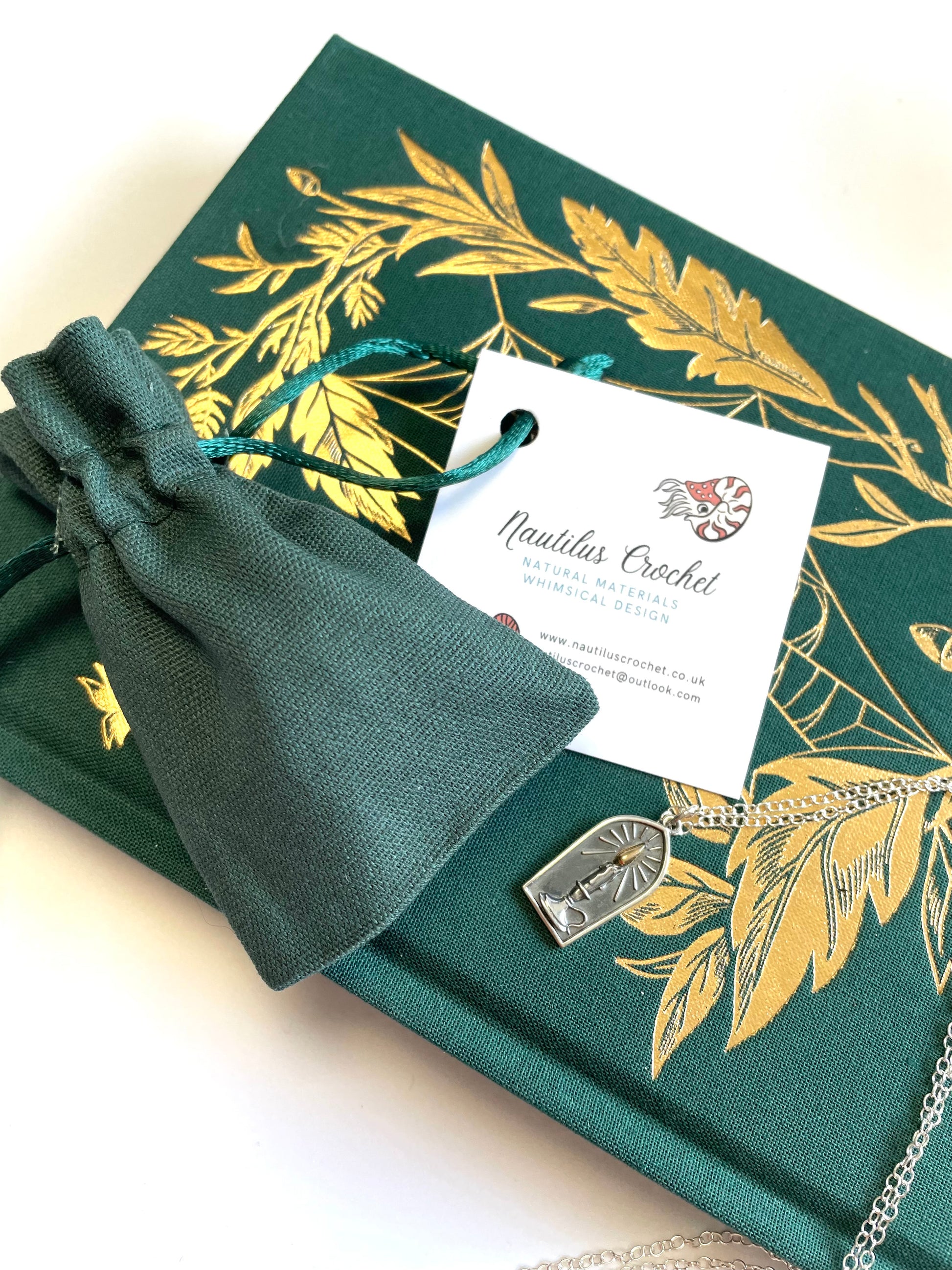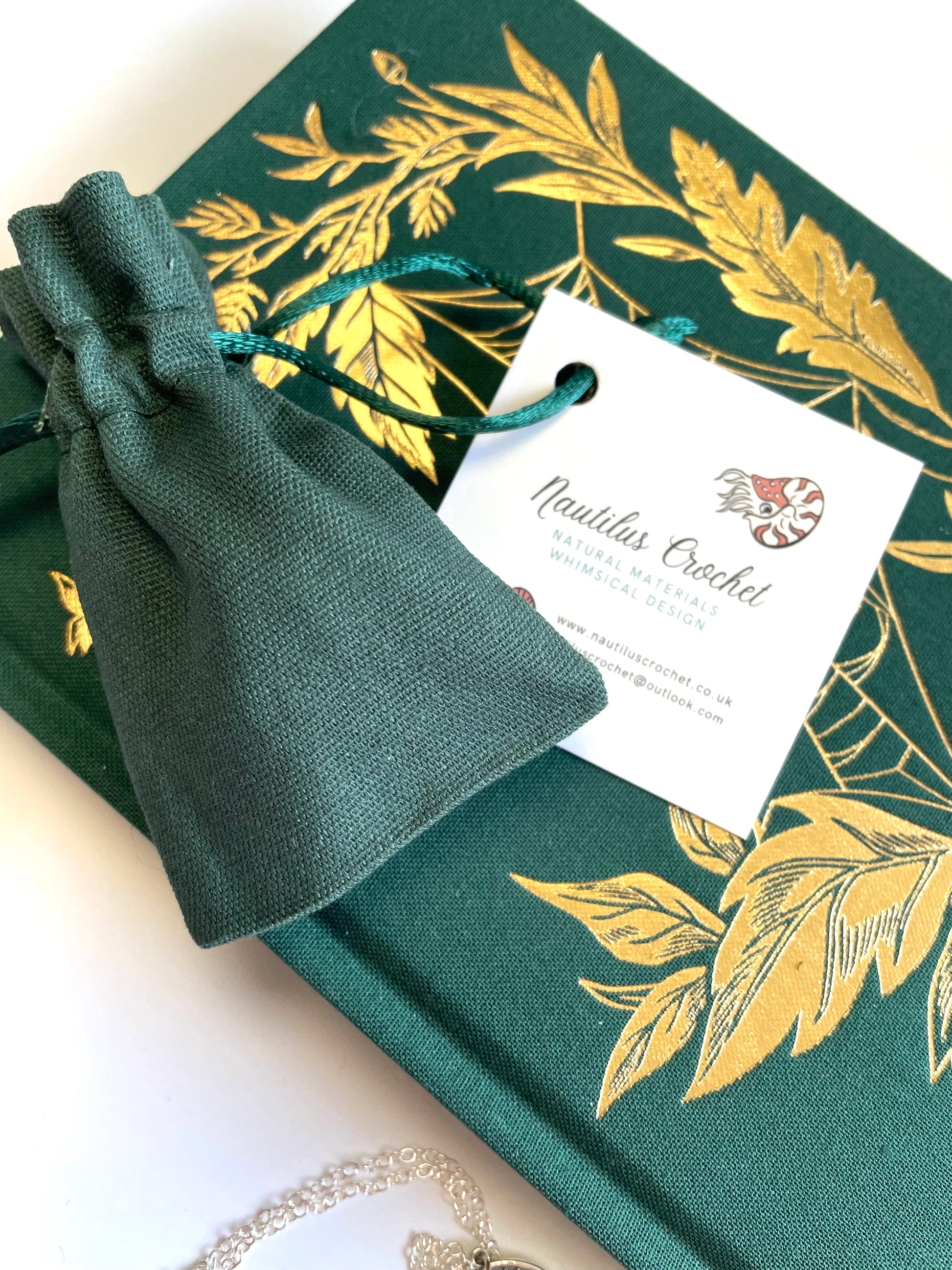 The necklace and pendant come carefully wrapped in a dark green recycled cotton drawstring bag, lovely to receive and perfect for gifting!