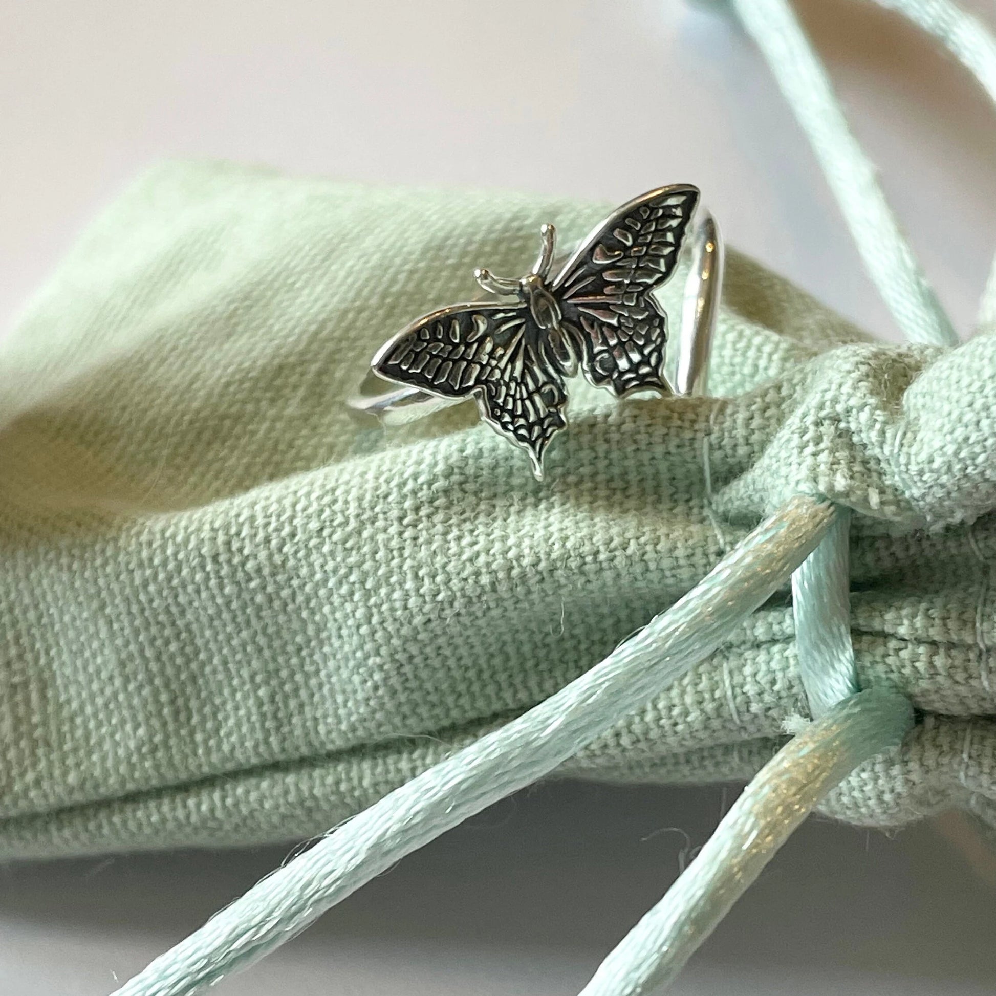 This beautiful Painted Lady Butterfly ring is Sterling Silver and full adjustable.