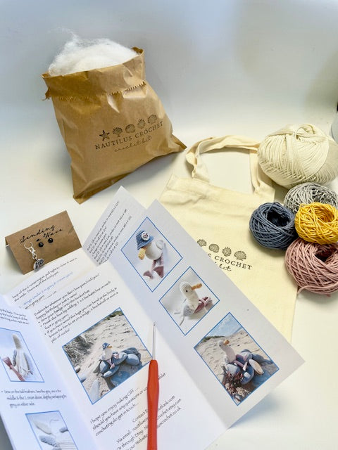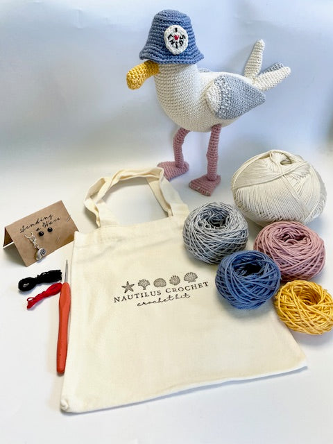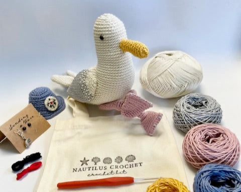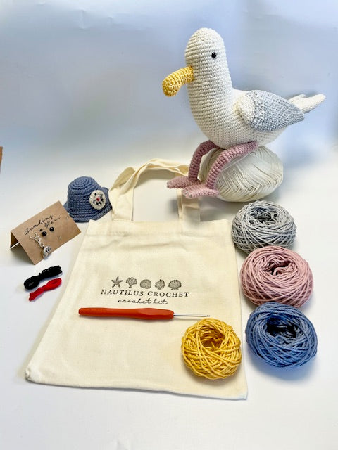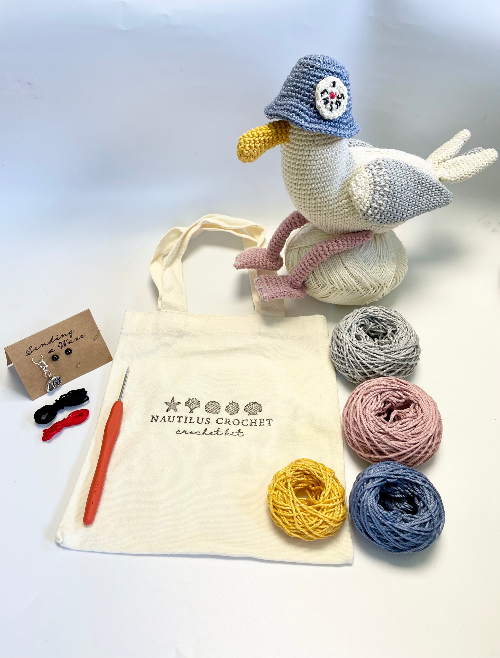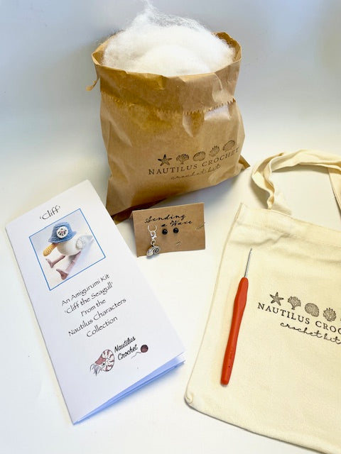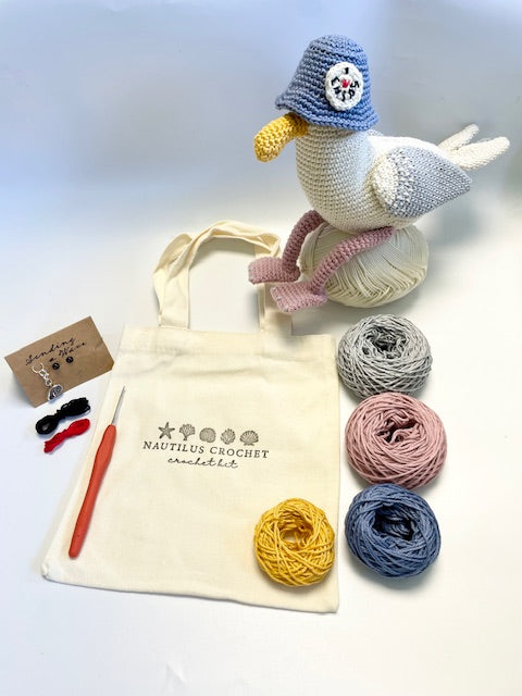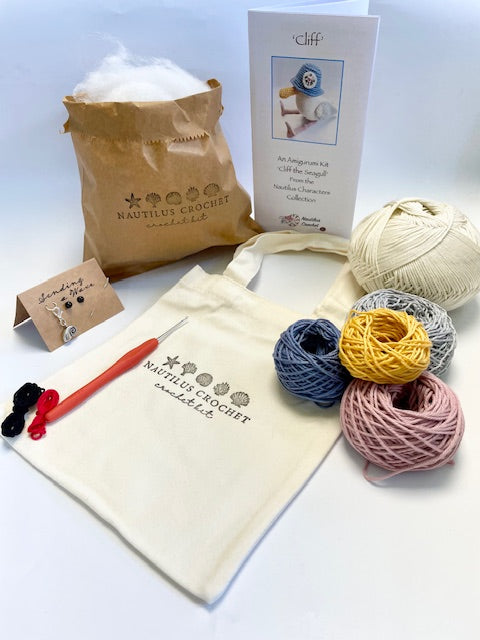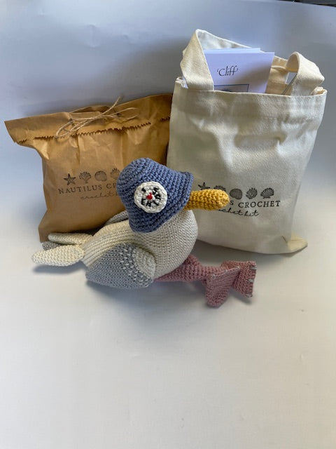 A Complete Crochet Kit to make your very own Cliff the Seagull.