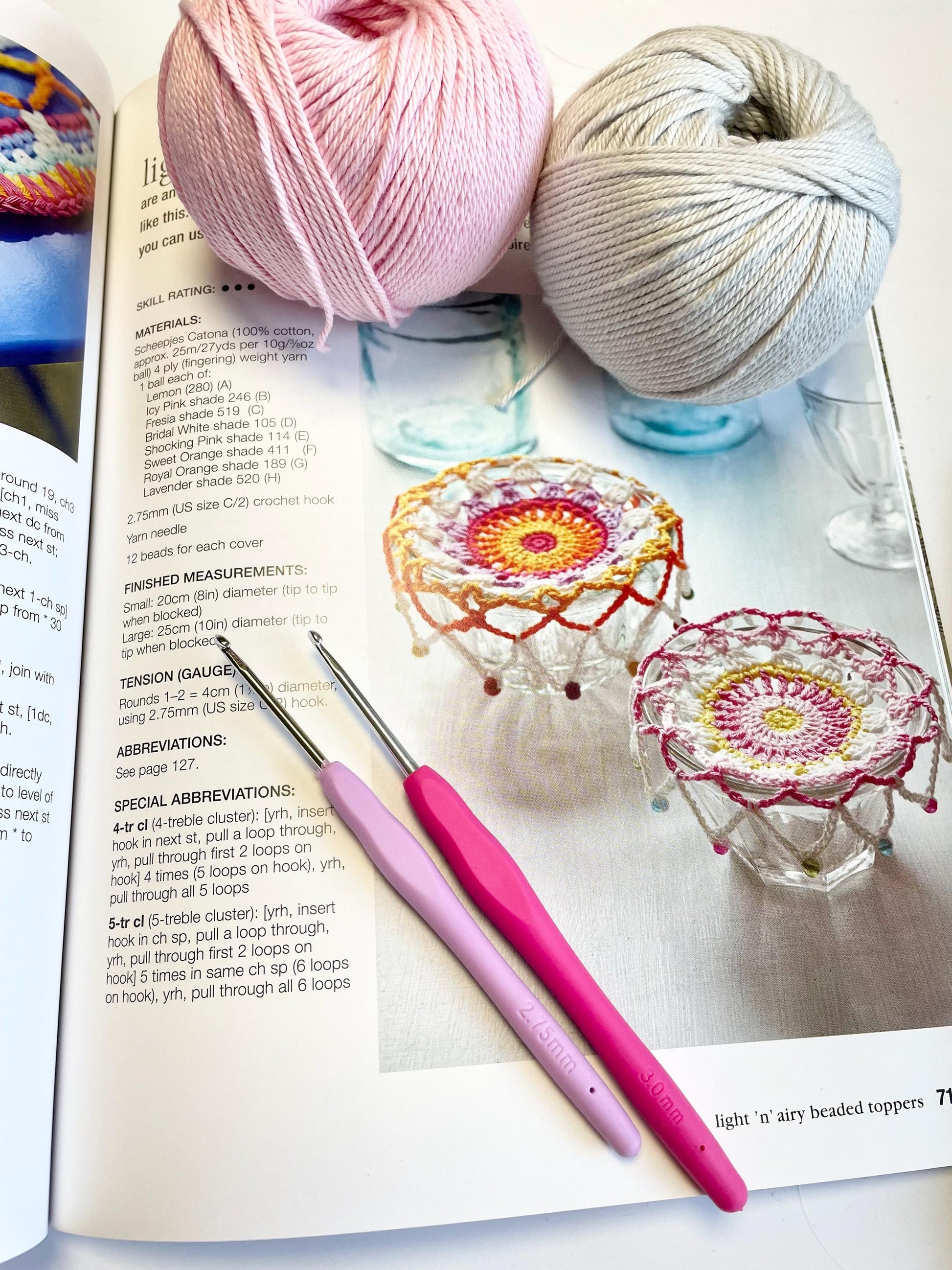 A copy of Emma Leith's vibrant and wonderful crochet book Mindful Crochet. 35 Bright and beautiful designs incorporating elements of mindfulness practice, superb patterns with simple repetitive stitches to soothe the mind and calm the brain. The book contains several simple projects that are achievable in an evening, such as the cutest coasters and stress ball keyrings, to those to work on for several days such as a beautiful shawl, a simple cowl and gorgeous mittens. There are many designs that would make lovely presents too. Suitable for the beginner to an advanced crocheter. Everything from holding a crochet hook to stitch-guides for all the stitches used in the designs.