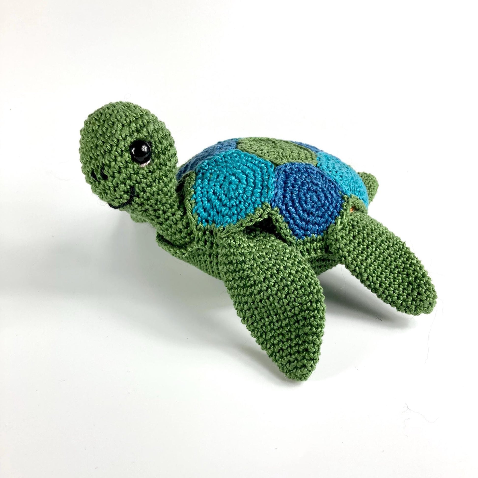Our Sea Turtle Stitch Marker in its shell card. Perfect for marking your rounds & lovely to give as a charm if you are gifting your Turtle.
