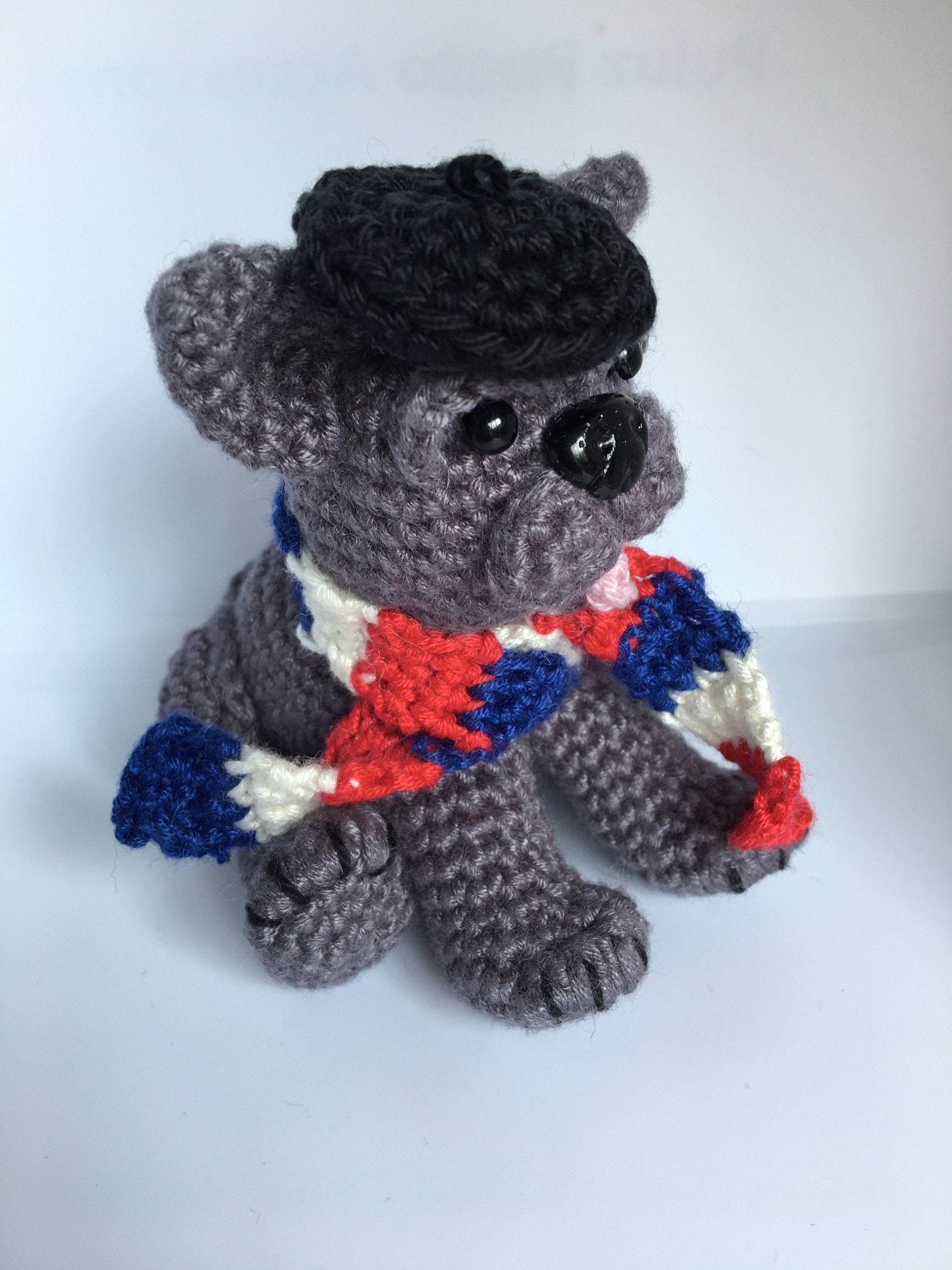 Wearing his Tricolore scarf and beret, he makes a great mascot or desk buddy.