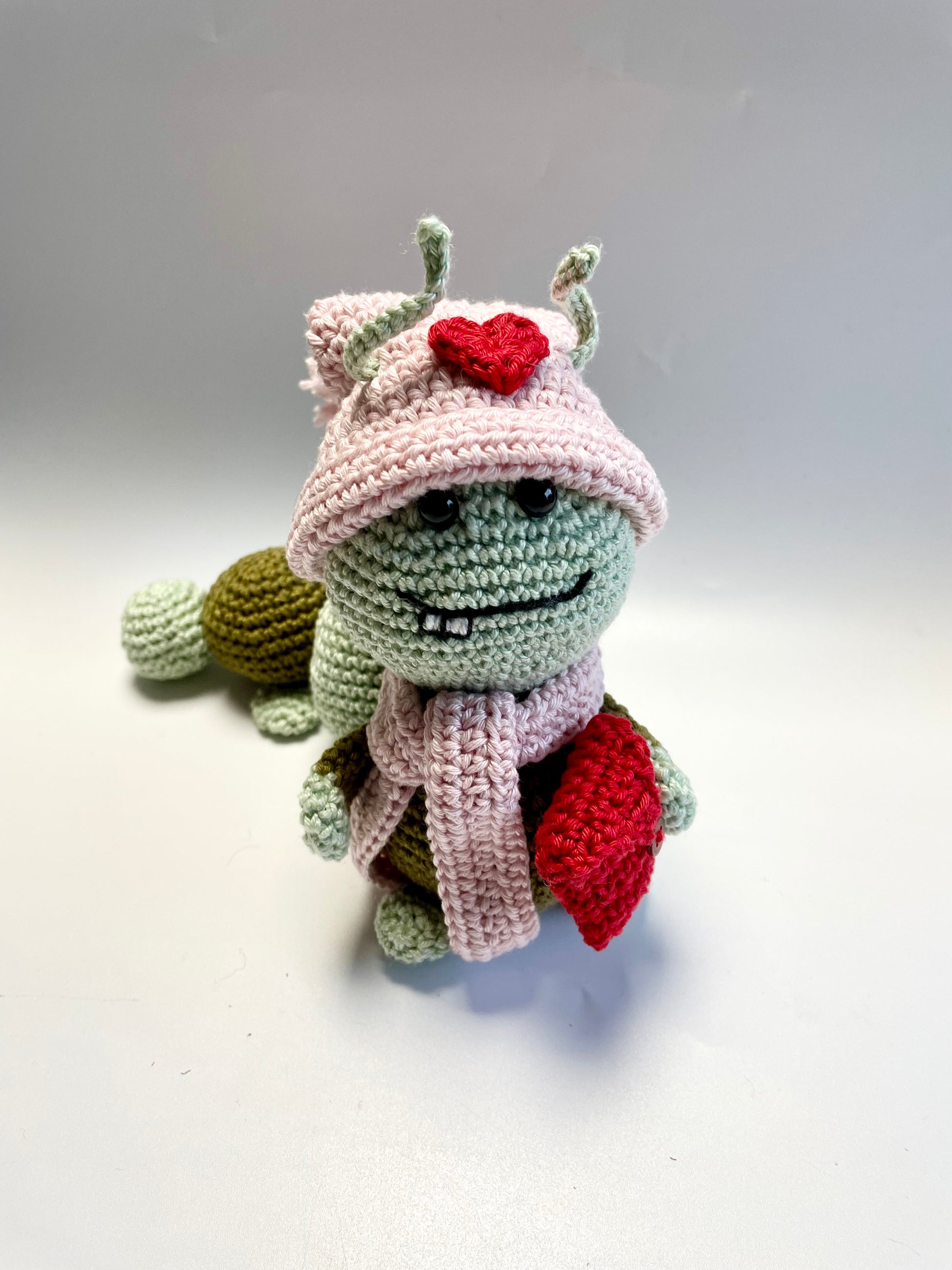 His construction is simple, using double crochet, half treble crochet, increase and decrease throughout with full support from the designer as required.