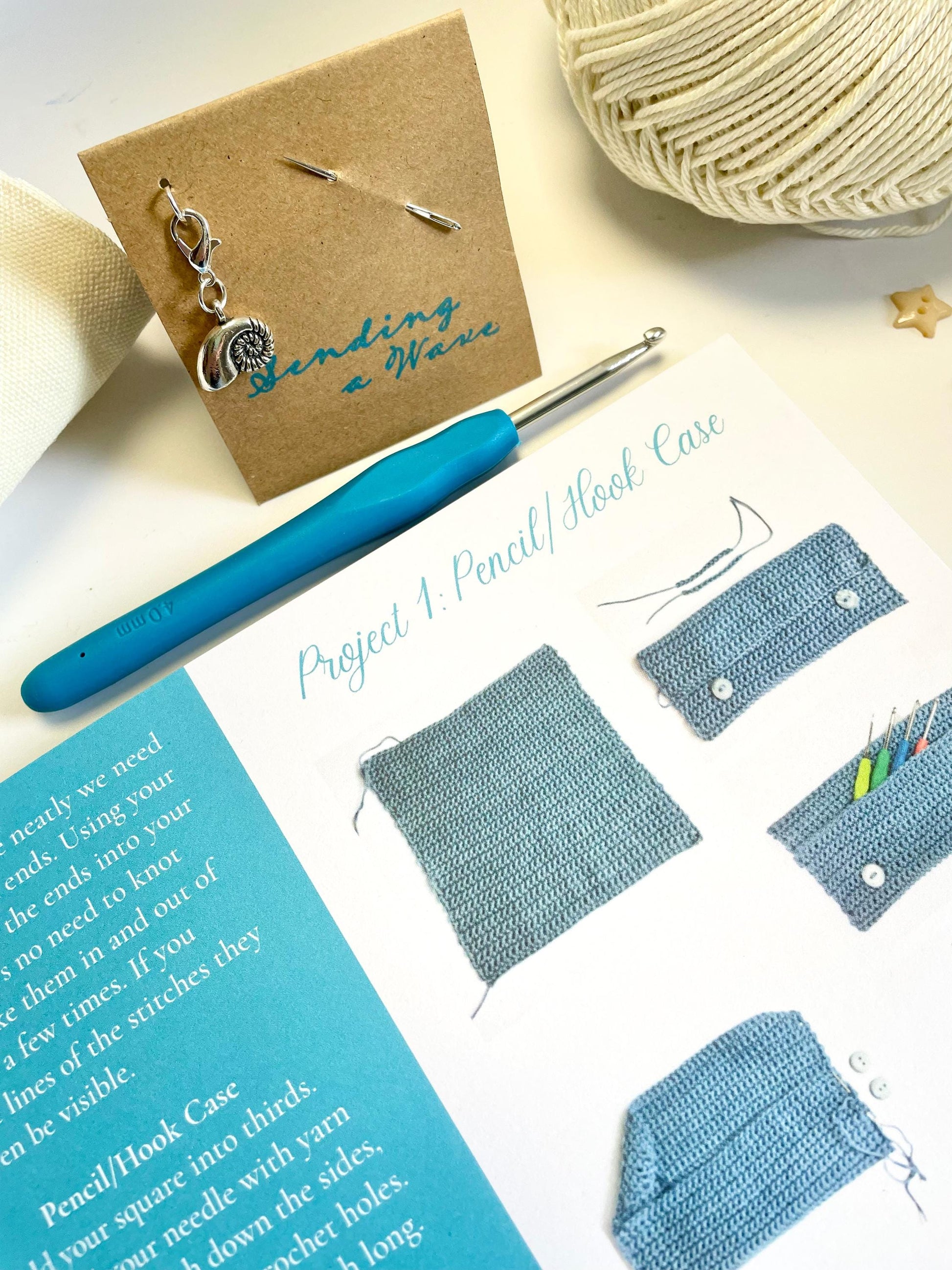 A perfect kit for trying crochet! Luxury yarn, a comfortable hook and gorgeous accessories make this kit perfect for a beginner.