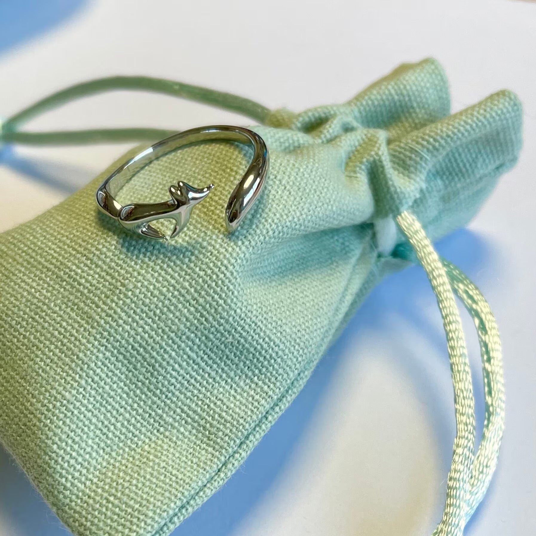 This sterling silver adjustable cuff style ring features a small running fox, with his tail forming the other end of the cuff - adorable!