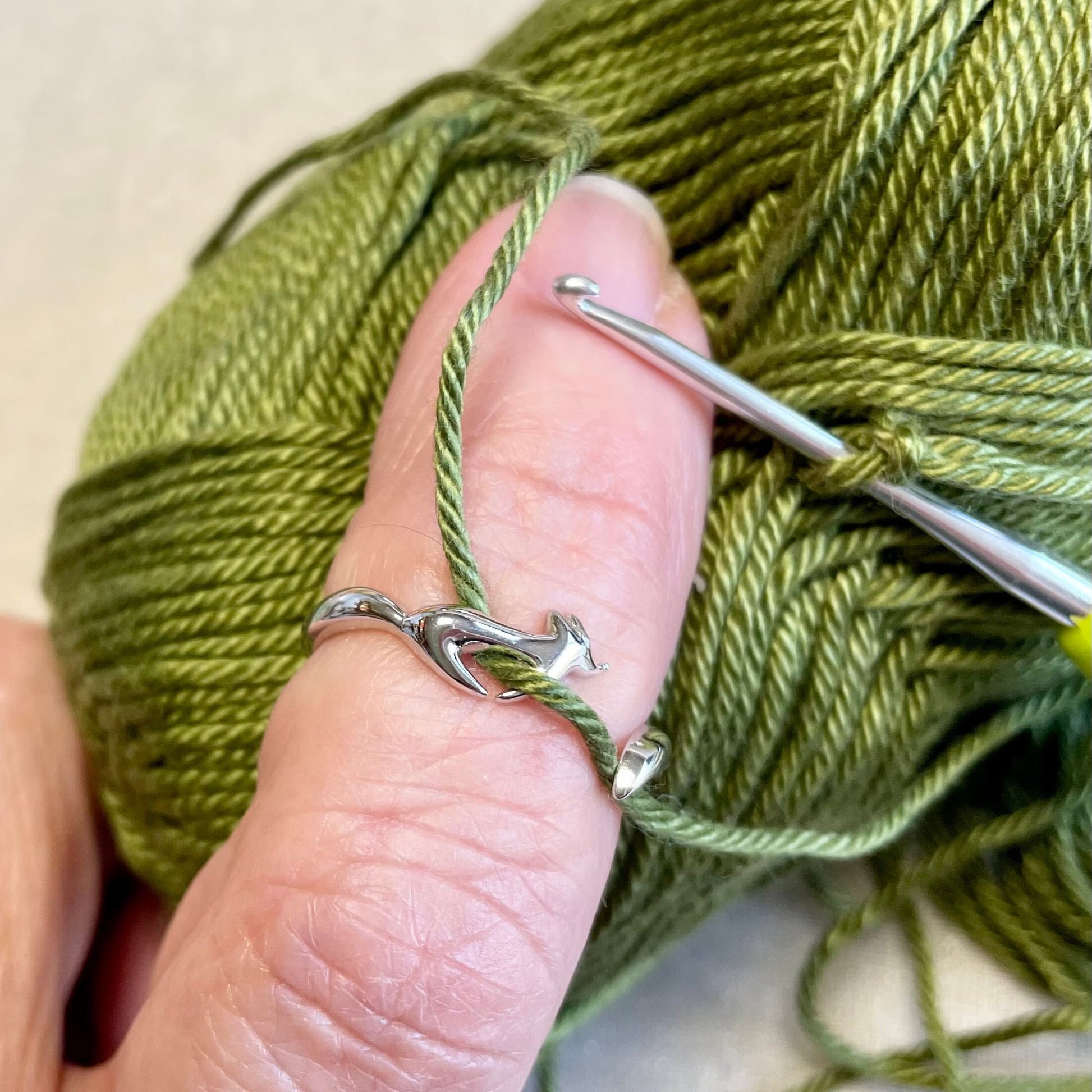 It keeps the tension in the yarn resulting in a smooth crochet without having to keep adjusting your yarn hand. Whatever your crochet style, however you hold your yarn, this ring works best with fine yarns.