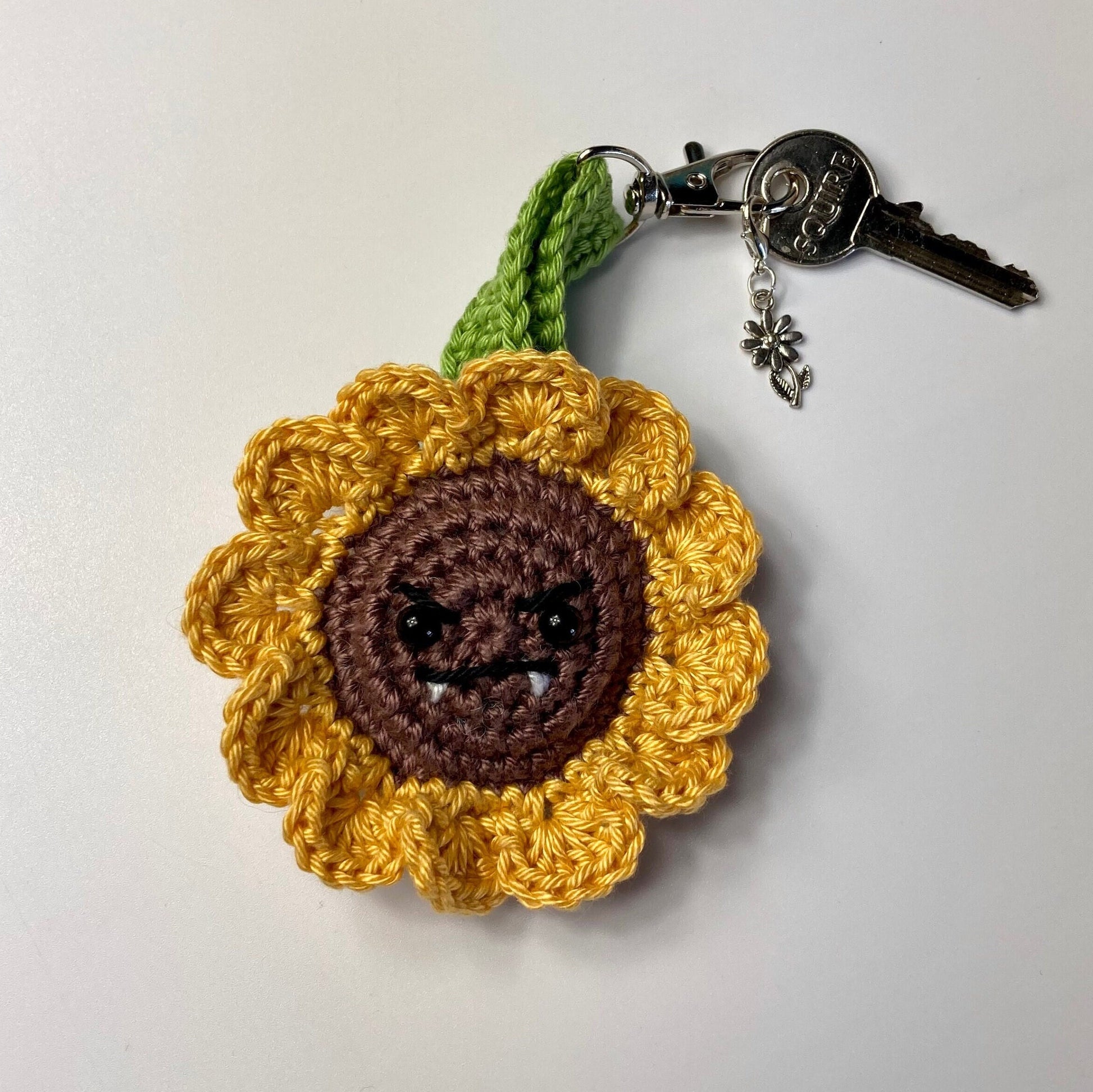 Sunflower Keyring / Bag Charm Crochet Kit Suitable for a crochet beginner, complete with extra yarns to customise your keyring's expression - A ' Jolly little sunflower' or a 'Don't call me Petal' the choice is yours!