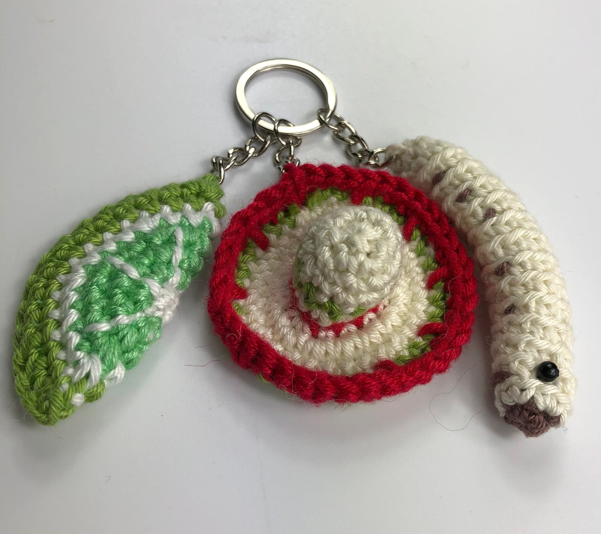 TEQUILA inspired keyring! Sombrero, Lime and a Happy Tequila Worm!