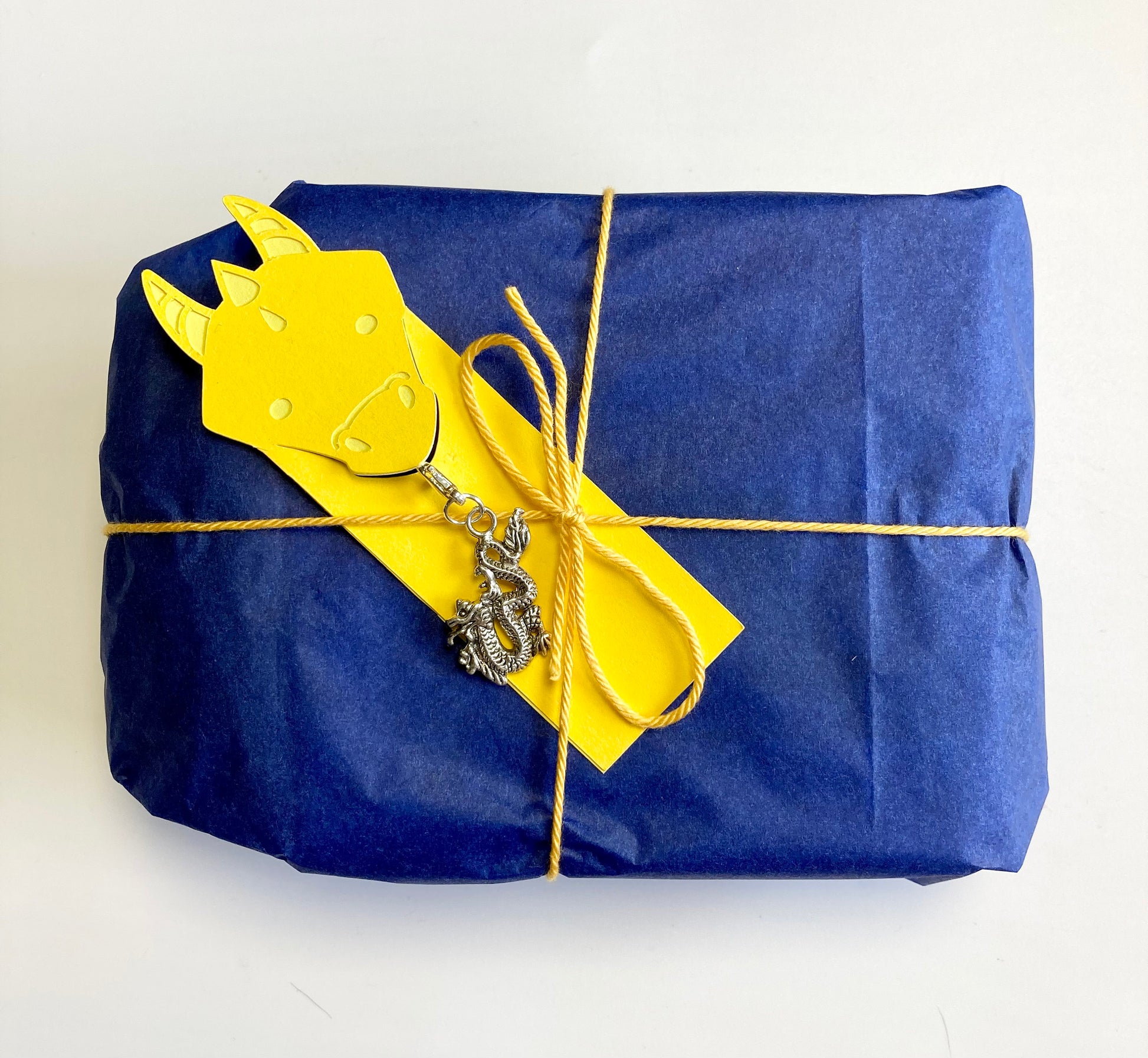 - Our cute Chinese Dragon stitch marker mounted on a dragon card.